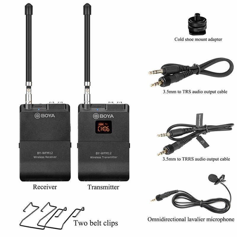El BOYA BY-WFM12 es un sistema de micrófono inalámbrico VHF de 12 canales, que captura audio con smartphones, DSLRs, videocámaras, grabadoras de audio, ordenadores y mucho más.