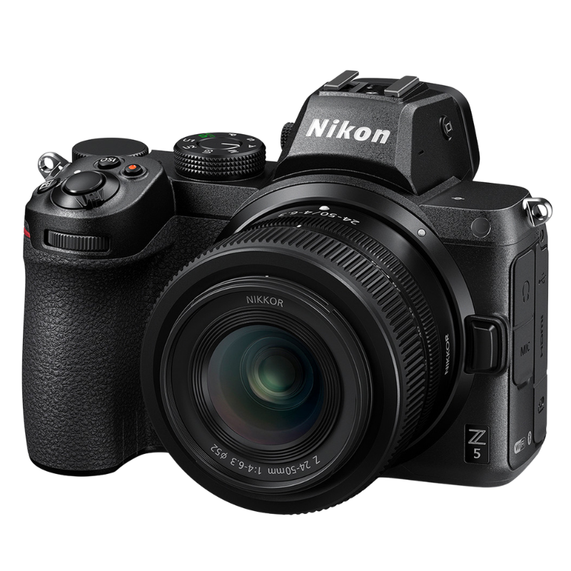 La Nikon Z5 es una cámara mirrorless de fotograma completo pensada para fotógrafos y videógrafos que buscan versatilidad y portabilidad. Su sensor CMOS de 24.3 megapíxeles combinado con el procesador EXPEED 6 ofrece imágenes nítidas y con amplio rango dinámico. El kit incluye el objetivo NIKKOR Z 24-50mm f/4-6.3, compacto y ligero, ideal para viajes y fotografía diaria. La cámara permite grabación de vídeo 4K UHD, disparo continuo hasta 4.5 fps, y dispone de estabilización de imagen en el cuerpo de 5 ejes (IBIS) para reducir la trepidación. Su cuerpo resistente al polvo y la humedad y conectividad Wi-Fi/Bluetooth facilitan el trabajo en cualquier entorno.