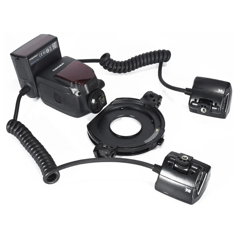 El YONGNUO YN-24EX es un flash macro avanzado que ofrece control total sobre la iluminación de primeros planos. A diferencia de un flash anular, sus dos cabezales se montan al frente del objetivo y pueden girarse y separarse, permitiendo modelar las sombras y resaltar texturas con precisión.