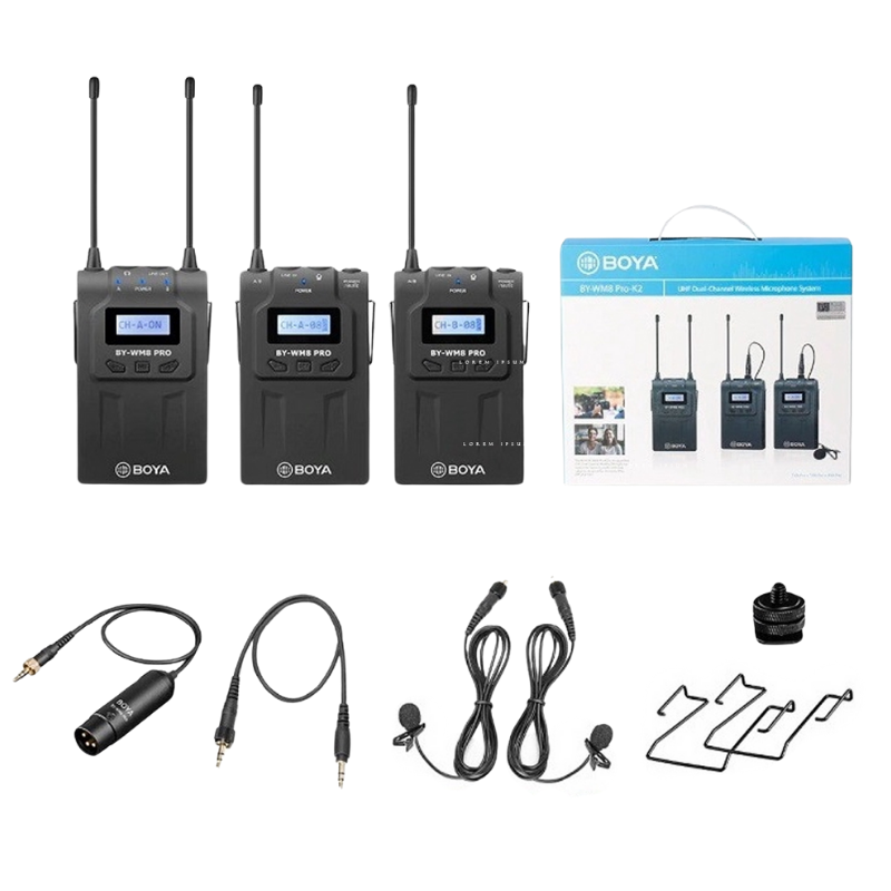 El Boya BY-WM8 PRO-K2 es un sistema profesional de micrófonos inalámbricos UHF con dos transmisores y un receptor, diseñado para producciones audiovisuales, entrevistas, grabaciones en exteriores y trabajo en estudio. Ofrece audio claro, estable y sin interferencias, incluso en entornos complejos. Su amplio rango de frecuencia, pantallas LCD y opciones de ajuste de canal permiten un control preciso del audio, convirtiéndolo en una herramienta confiable para videógrafos, periodistas y creadores de contenido exigentes.