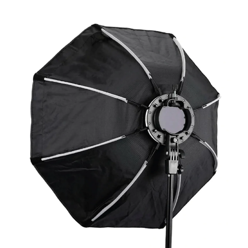 El Softbox Triopo Serie K3 de 120 cm está diseñado para ofrecer una iluminación amplia, suave y envolvente, ideal para retratos, fotografía de moda, productos y producciones en video. Su forma octagonal genera una luz natural y difusa que realza los detalles del sujeto y suaviza las sombras. Gracias a su sistema de apertura rápida tipo paraguas, el armado y desmontaje es sencillo y rápido, lo que lo hace perfecto para sesiones en estudio o locaciones. Su interior plateado potencia la reflexión de la luz, y su montura Bowens garantiza compatibilidad con la mayoría de luces y flashes del mercado.