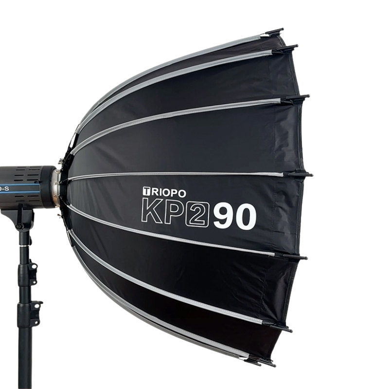 El Softbox Triopo Serie KP2 de 90 cm está diseñado para ofrecer una iluminación suave, envolvente y profesional, ideal para retratos, sesiones de moda, fotografía de producto o producciones en video. Su forma octagonal permite obtener una luz natural y reflejos agradables en el sujeto. Gracias a su sistema de apertura rápida tipo paraguas, se arma y desmonta en segundos, facilitando su uso en estudio o exteriores. El interior plateado mejora la eficiencia de la luz, y su montura Bowens garantiza compatibilidad con una amplia variedad de flashes y luces LED.