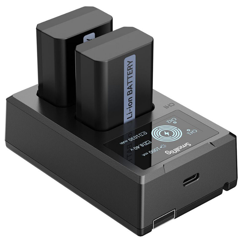 El Kit SmallRig NP-FW50 incluye dos baterías recargables de ion de litio y un cargador dual inteligente, ideal para cámaras Sony que utilizan este tipo de batería. Diseñado para ofrecer una alimentación confiable y de larga duración, permite mantener tus equipos listos durante sesiones de grabación o fotografía extensas. El cargador dual cuenta con puertos USB-C y Micro USB, así como indicadores LED que muestran el progreso de carga de cada batería.