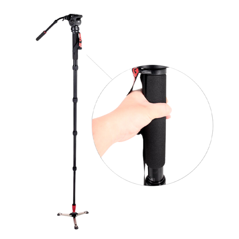 El Jie Yang 506 es un monopie profesional diseñado para videógrafos y fotógrafos que buscan estabilidad y movilidad en sus tomas. Su construcción en aluminio de alta resistencia ofrece durabilidad y soporte para equipos pesados, mientras que su base con patas retráctiles brinda un equilibrio firme incluso en movimiento. Ideal para grabaciones en exteriores, eventos o producciones donde se requiere rapidez y versatilidad.