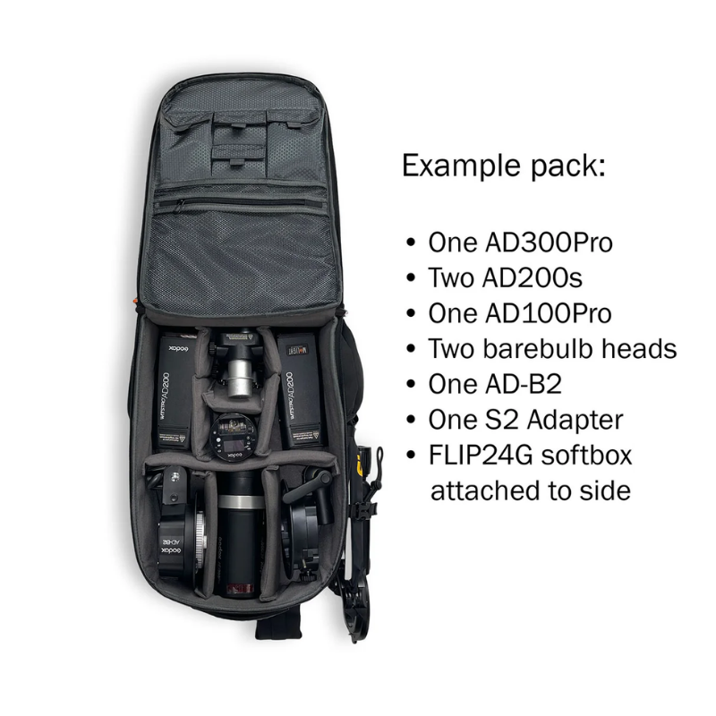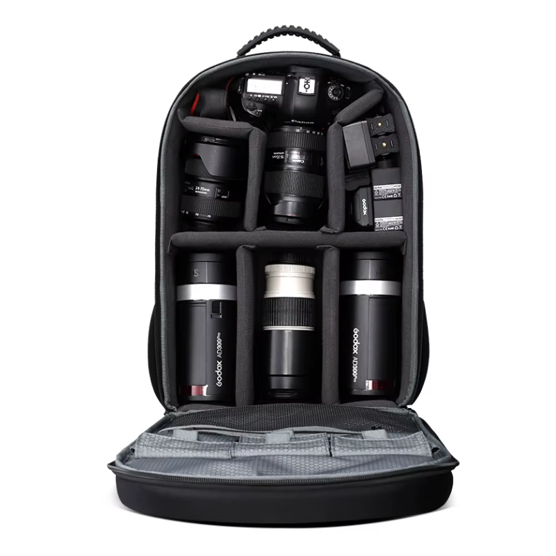 La Godox CB20 es una mochila profesional diseñada para transportar equipos de iluminación portátiles, especialmente modelos como el AD300Pro y AD400Pro, junto con sus accesorios. Su interior totalmente acolchado y configurable permite organizar el equipo de manera segura, evitando golpes y roces durante el traslado. Fabricada con materiales resistentes y un diseño ergonómico, ofrece protección, comodidad y amplio espacio para fotógrafos que trabajan en exteriores o requieren movilidad constante.